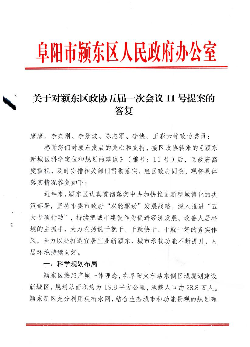 关于颍东区政协五届一次第11号委员提案的答复